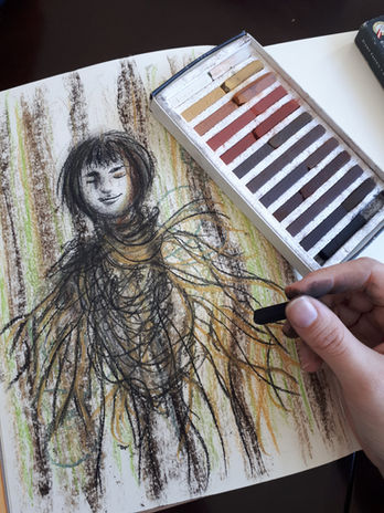 That spark never dimmed. Through my teenage years, I dove into art books, teaching myself everything I could. Eventually, that passion carried me to university, where I earned my certificate in visual arts. But I wanted more... so I jumped at the chance to join a program helping emerging artists turn their dreams into full-time careers. This is when I stepped fully into my life as a visual artist, creating pieces that capture the wisdom of the Spirits and their healing magic. Along the way, I even got certified as a creativity coach. I started doing workshops where I mixed shamanism and my coaching knowledge to help other artists break free from creative blocks and rediscover their natural flow.